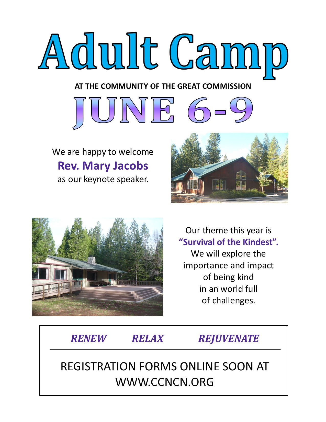 Just because you're out of high school doesn't mean you can't go to camp anymore. Maybe you never did go to camp as a youth, but would like to. Adult camp is for you. A laid back schedule with study and discussion in the mornings, free time for swimming, hiking, crafts, games, naps in the afternoons, and entertainment and campfires in the evening. Adult Camp takes place in Claar House, and is in session from June 5 to June 8.